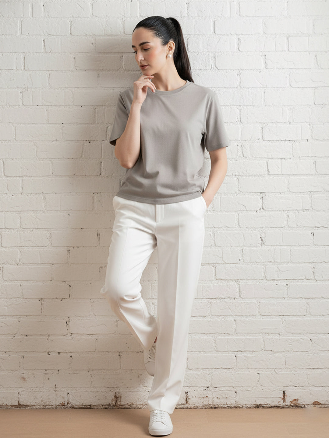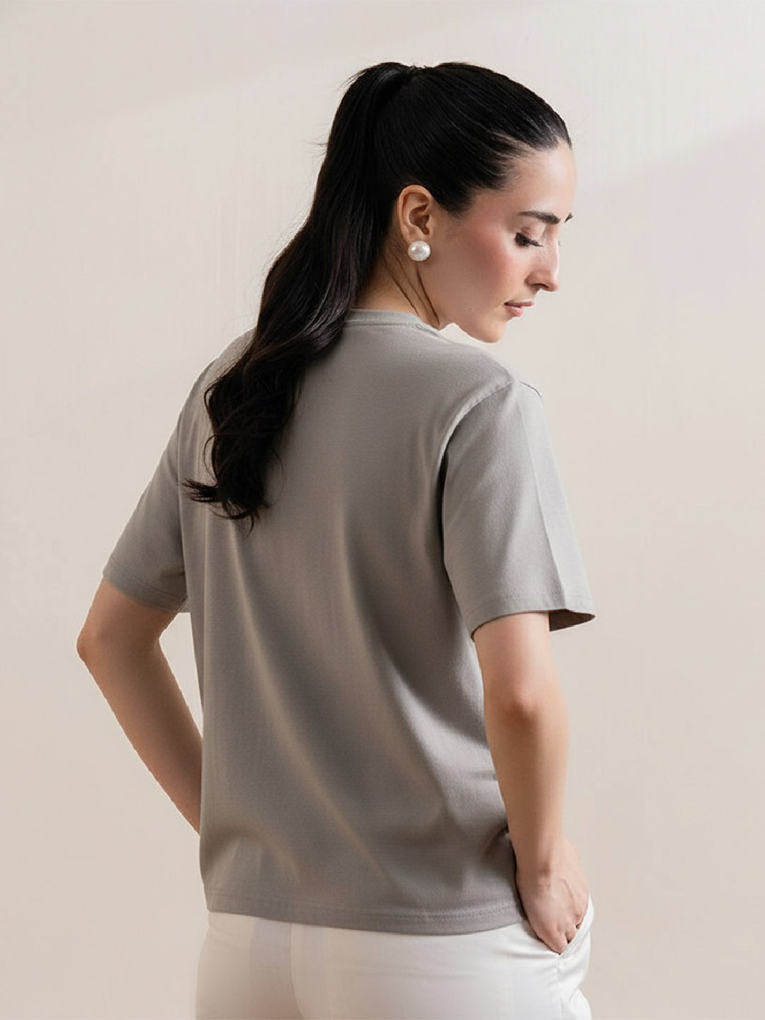 Basic Hazel Grey Regular Fit T-Shirt For Women