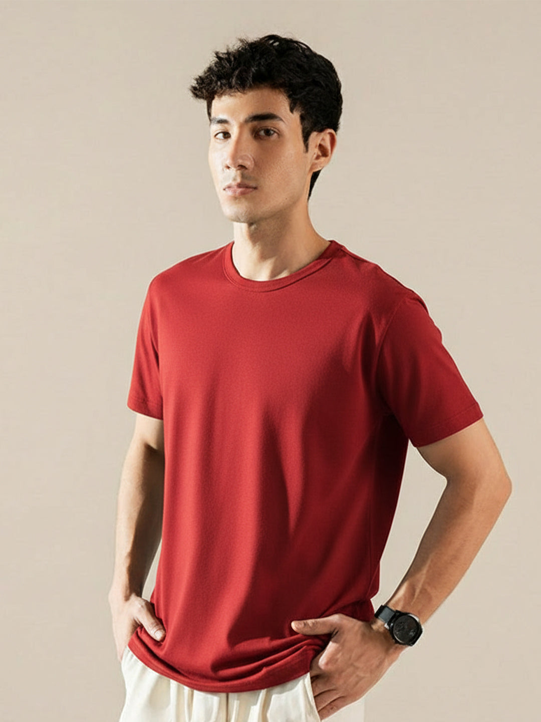 Basic Red Regular Fit T-Shirt For Men