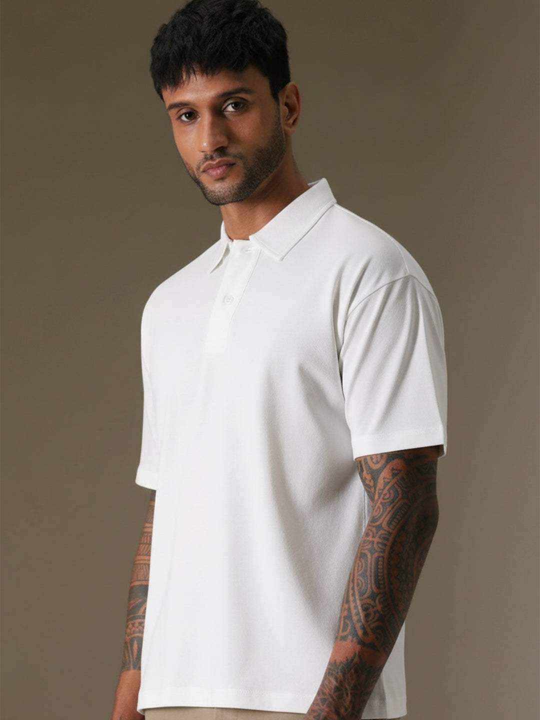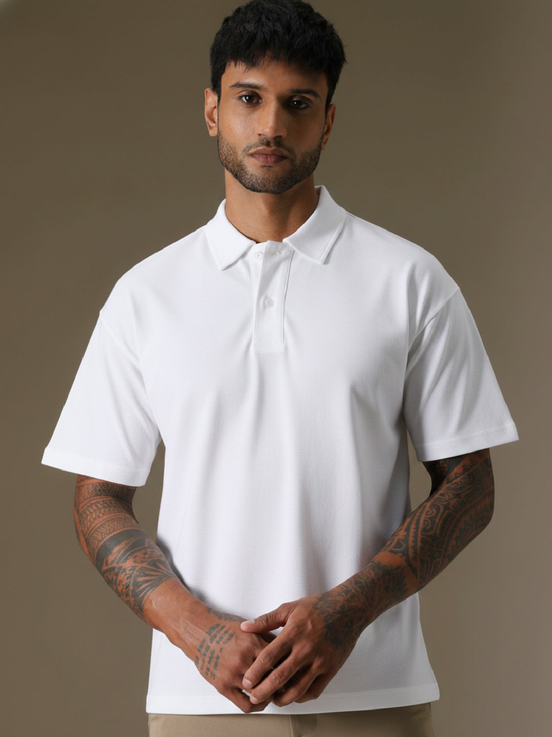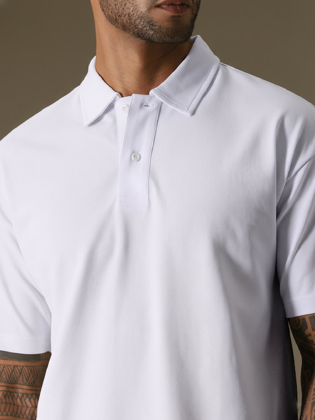 • Classic polo collar with button placket